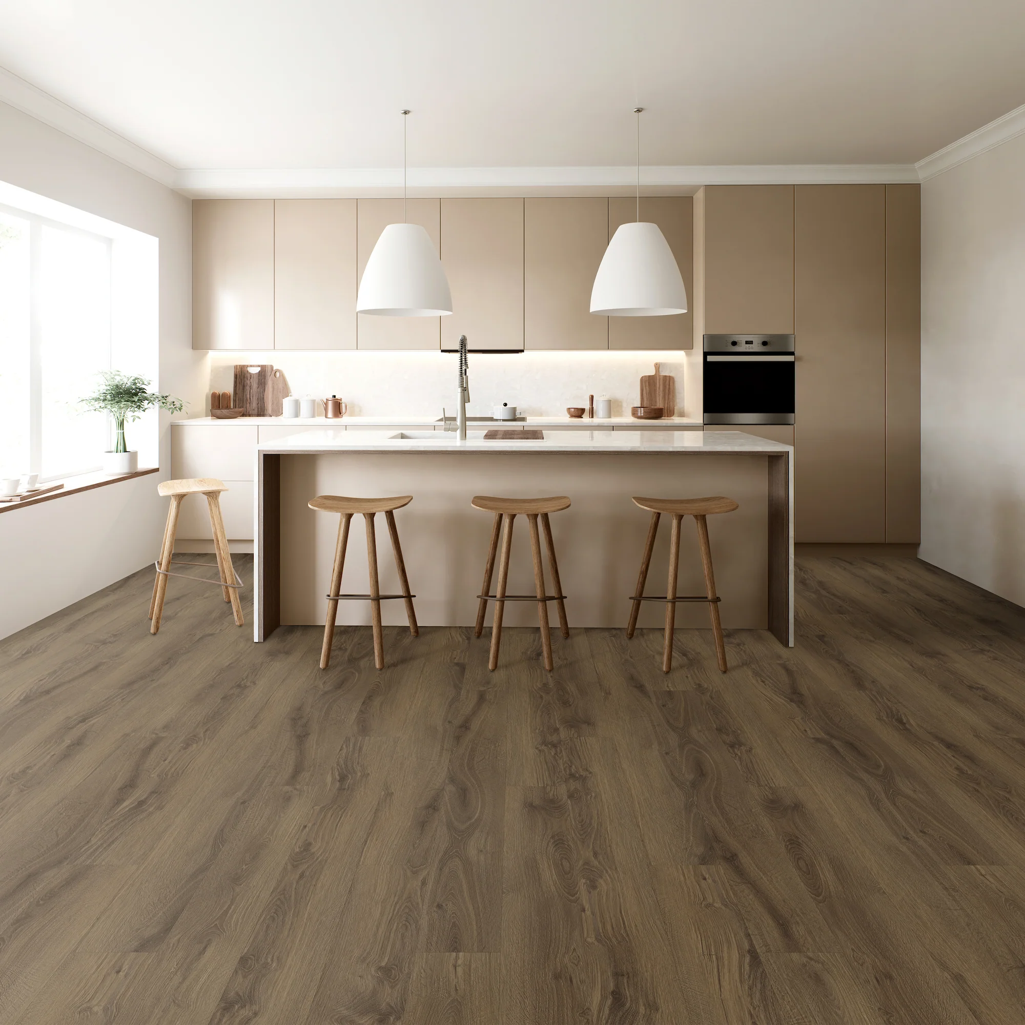 TRUCOR® moldings are 100% waterproof and can be installed in kitchens, bathrooms, and any other areas of the home. The trim and transitions are designed with the same high-definition colors and designs used in the floor for the best possible coordination, and its durable vinyl wear layer protects from stains or scuffs.