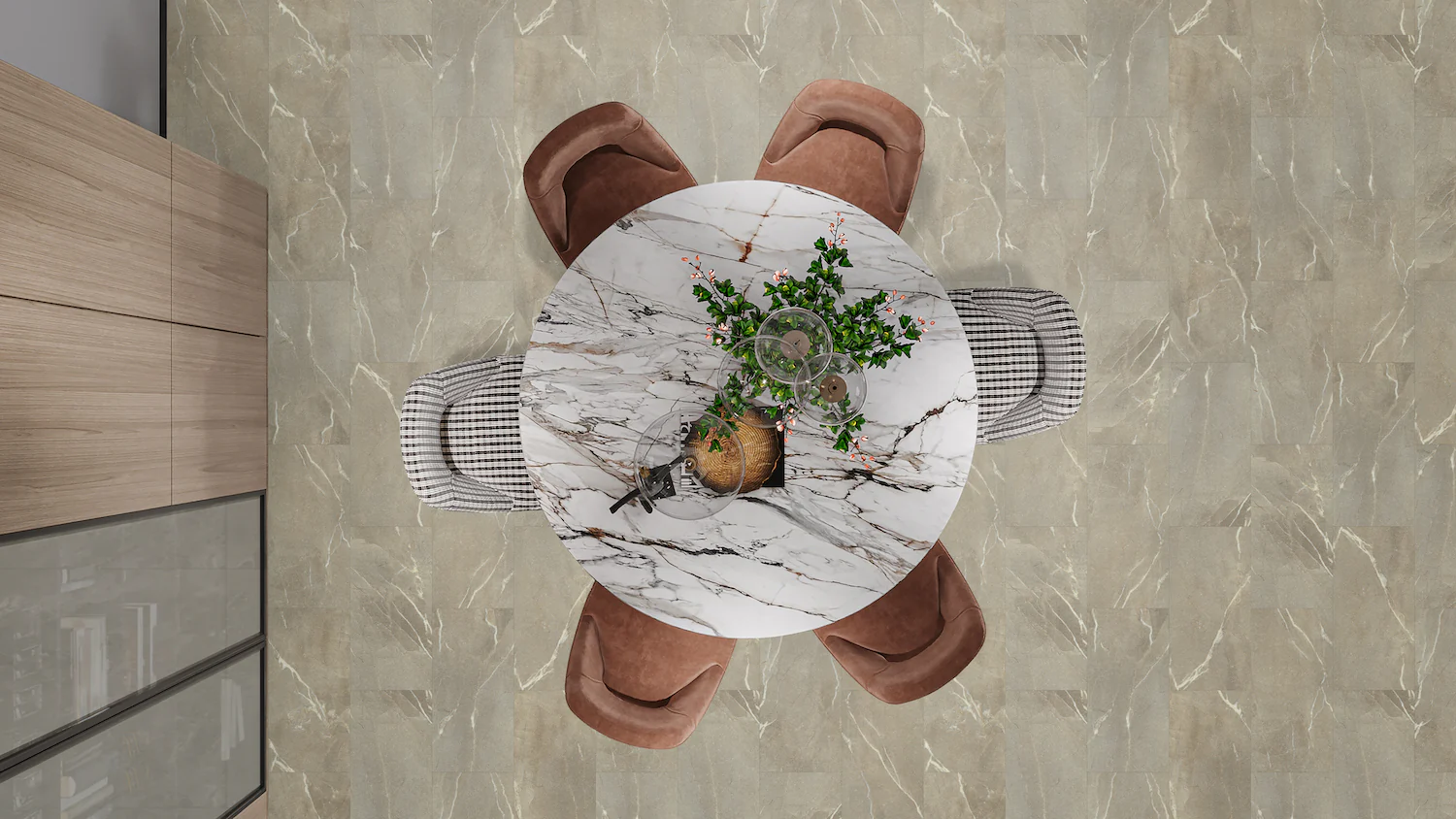 TRUCOR® moldings are 100% waterproof and can be installed in kitchens, bathrooms, and any other areas of the home. The trim and transitions are designed with the same high-definition colors and designs used in the floor for the best possible coordination, and its durable vinyl wear layer protects from stains or scuffs.